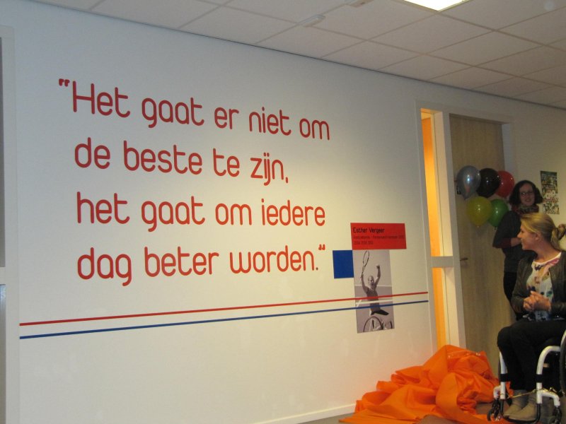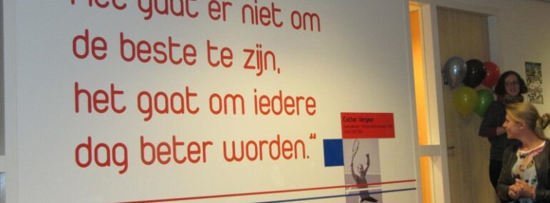 oktober 28, 2013Categorieën InterieurMuurschilderingen sieren het sport- en onderwijsgebouw op PapendalVrijdag 11 oktober 2013 heeft regerend wereld- en Olympisch kampioen rolstoeltennis Esther Vergeer in het sport- en onderwijsgebouw